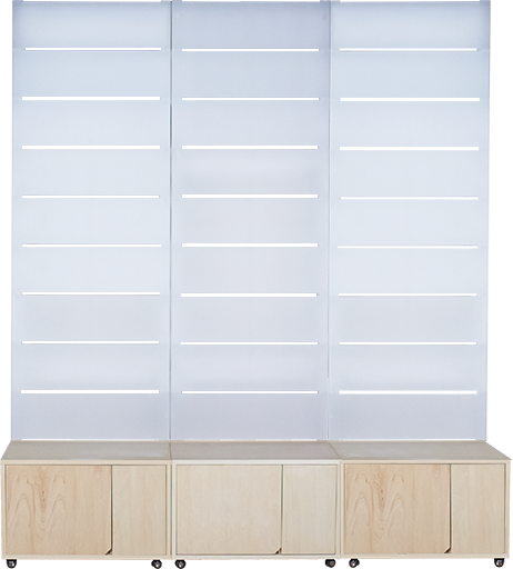 まるでインテリアのような配列から、天井までそびえ立つ壁棚。多用な使い方を考慮したラインナップで店内を簡単にカスタマイズできます。カジエシリーズは、自然光のような色使いを基調としておりますので、目に見える圧迫は殆どありません。使用目的や、展示商品のラインナップに合わせて自由に構想しながらお選びください。
