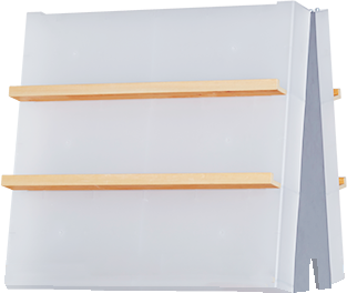FRPパネルは表面にシボ加工を施し、傷や汚れがつきにくく、付いても目立たないため、長年使用できるものに。また、シボ加工による柔らかい肌触りは、什器自体の主張を抑え、商品の魅力を最大限に引き出します。オプションでパネルの内側にはLED照明が取付可能です。シボ加工の効果で拡散した柔らかい光が、商品力アップに貢献致します。